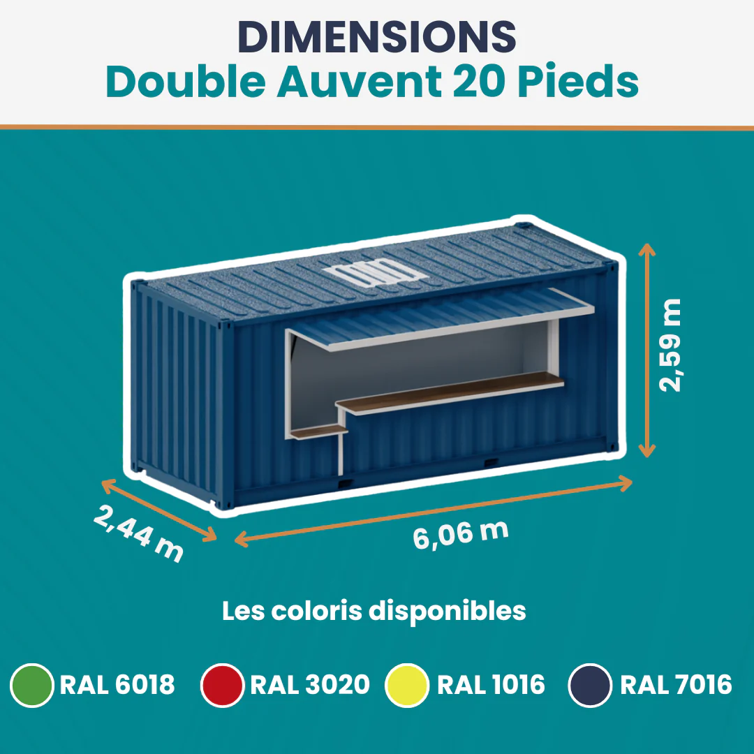 - Aesthetics : available in several RAL colours, with customisation option (signage, flocking, cladding).