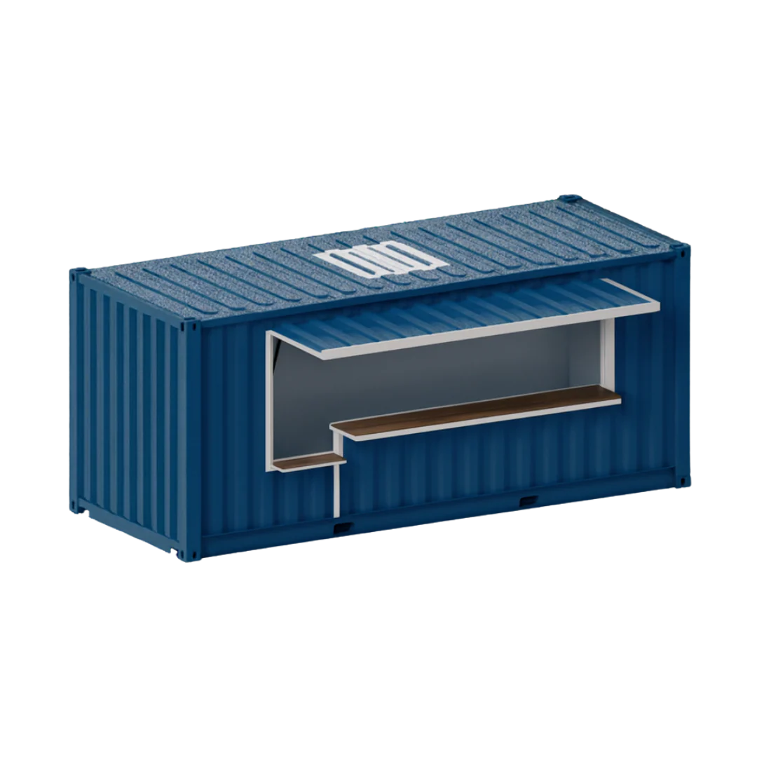 Practical, modular and economical, this converted container is designed to meet all your needs: reception area, bar, restaurant, ticket office, point of sale or temporary stand .