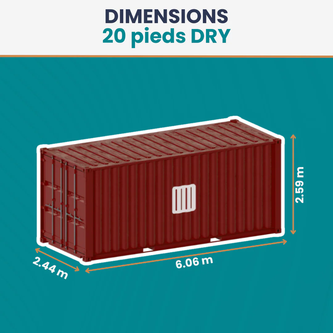The used 20-foot Dry container combines reliability, economy and adaptability, while offering a sustainable solution that meets your logistics or architectural projects.