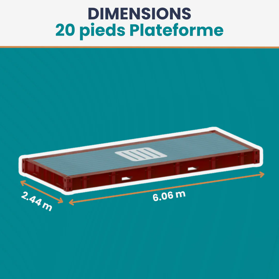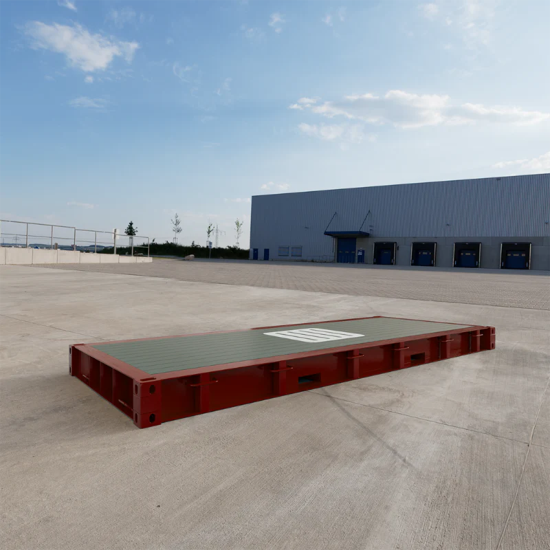 Without walls or a roof, the platform container is dedicated to transporting oversized materials that do not fit into conventional containers.